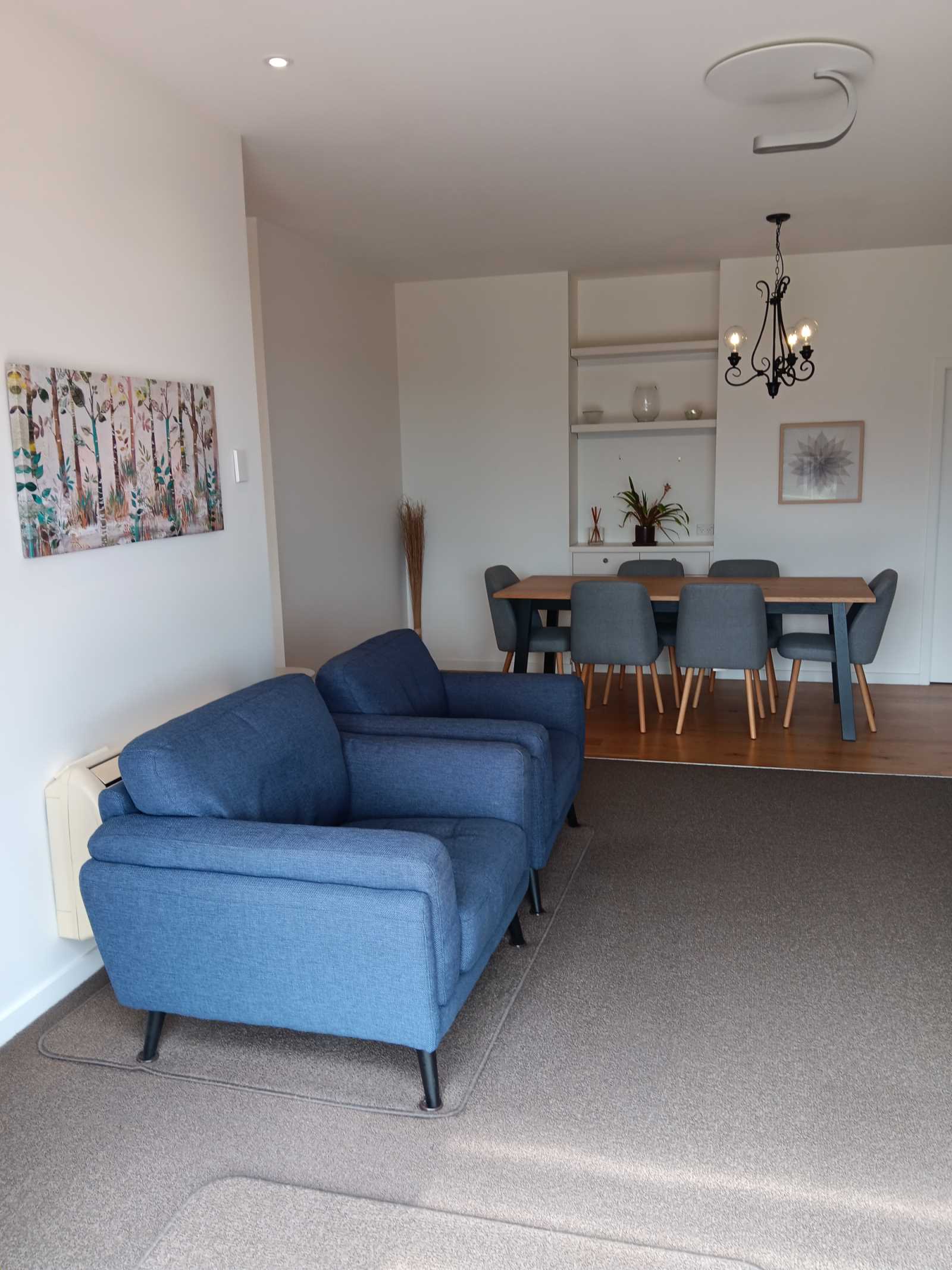 The house has full under-floor and ceiling insulation, a Metro in-built wood burner (with wetback) and three heat pumps (two upstairs and one downstairs). A two-way hallway from the main entrance contains two large linen cupboards, a separate airing cupboard, access to the double garage, the downstairs area, a separate family bathroom and a separate WC, both with under floor heating. There is a 2.7m ceiling height on both levels and quality double glazed joinery, fixtures and fittings throughout.