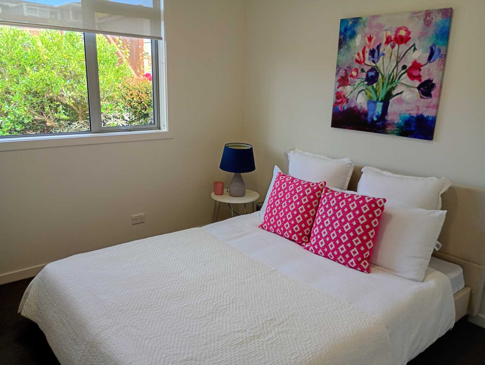 The house consists of a large open plan living area with divider shelving separating the dining/family area from the lounge, a separate craft room off the dining area, a large kitchen with a double sink, dishwasher, large 900mm electric oven with 5-burner gas hob, and a spacious walk-in pantry. There are four double bedrooms, one of which having its own entrance at the front of the house, which could be used as an office. All bedrooms (apart from master) have large wall-length wardrobes with plenty of shelving. The master bedroom has a large walk-in wardrobe and an en-suite bathroom with under floor heating. All rooms have an abundance of power points. There are power points and water outlets on the outside corners of the house for easy garden maintenance.