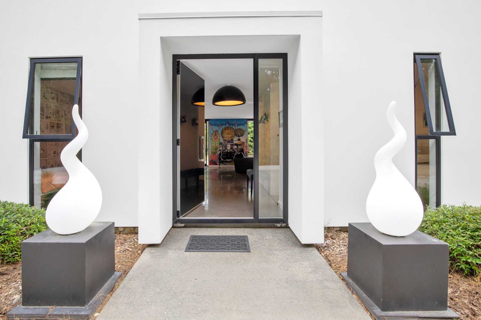 Included in the sale: Fixed Floor coverings. Window coverings. Light fittings. Stove. Hob/Cooktop. Oven. Garden shed. Dishwasher. Heat pump. Range hood. Heated towel rails. Alarm system. TV aerial. Garage door openers. Shelving. Spa pool. Refrigerator. Light shades. Freezer. LED Light Bulbs. Blinds. Curtains. Sky Dish. Gas fire. Intergrated sound system with 18 speakers indoor and outdoor. Electric gate. Underfloor heating. Six smart wall mounted TVs.