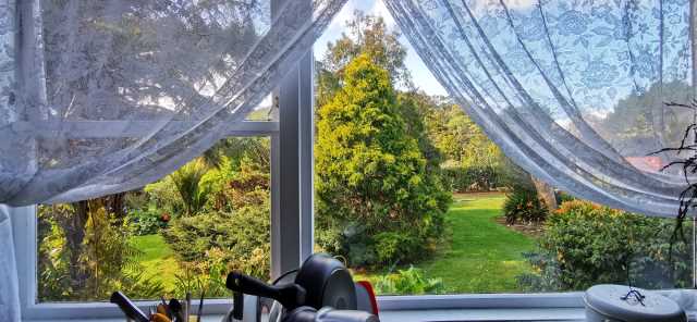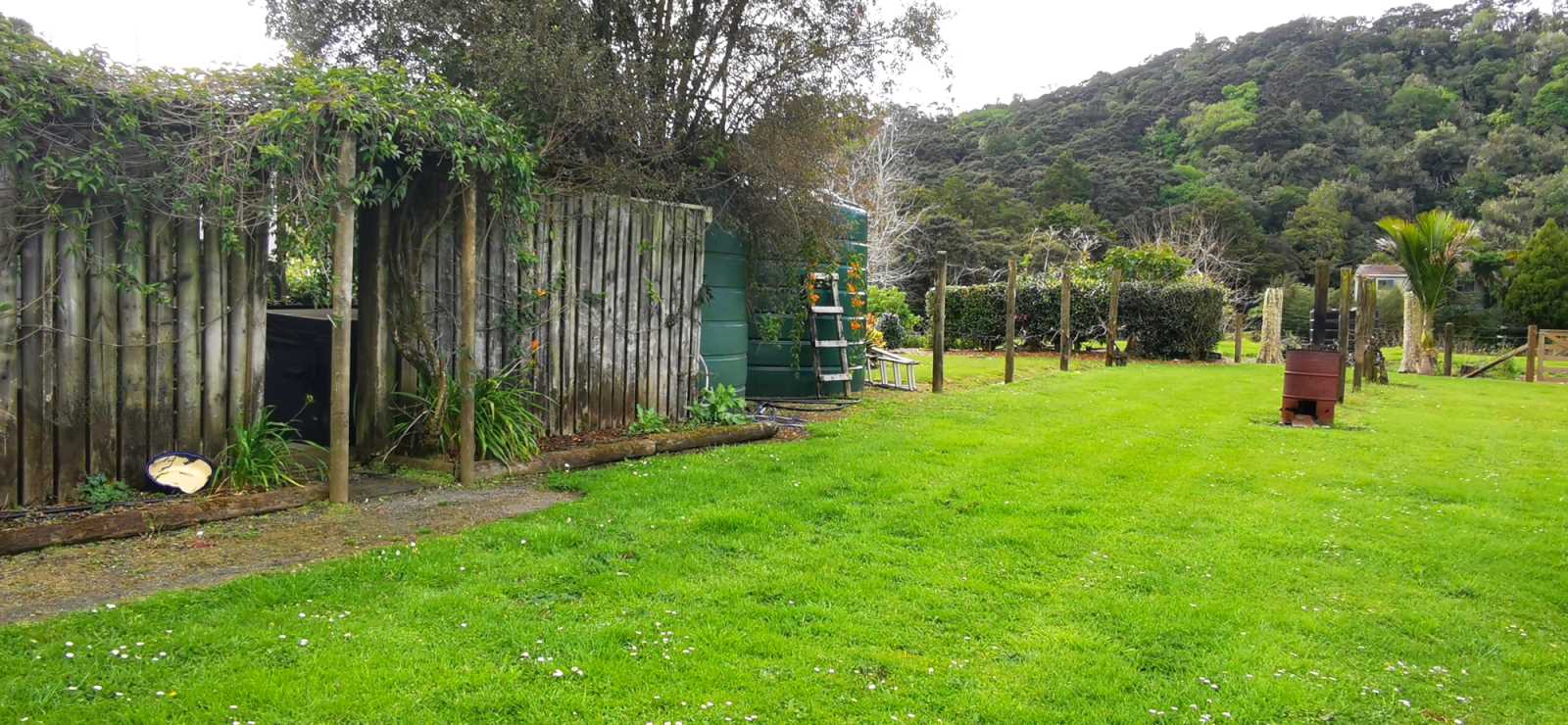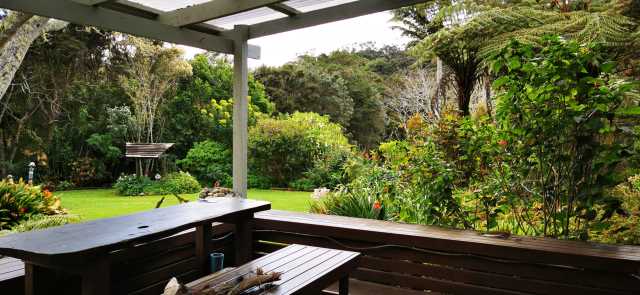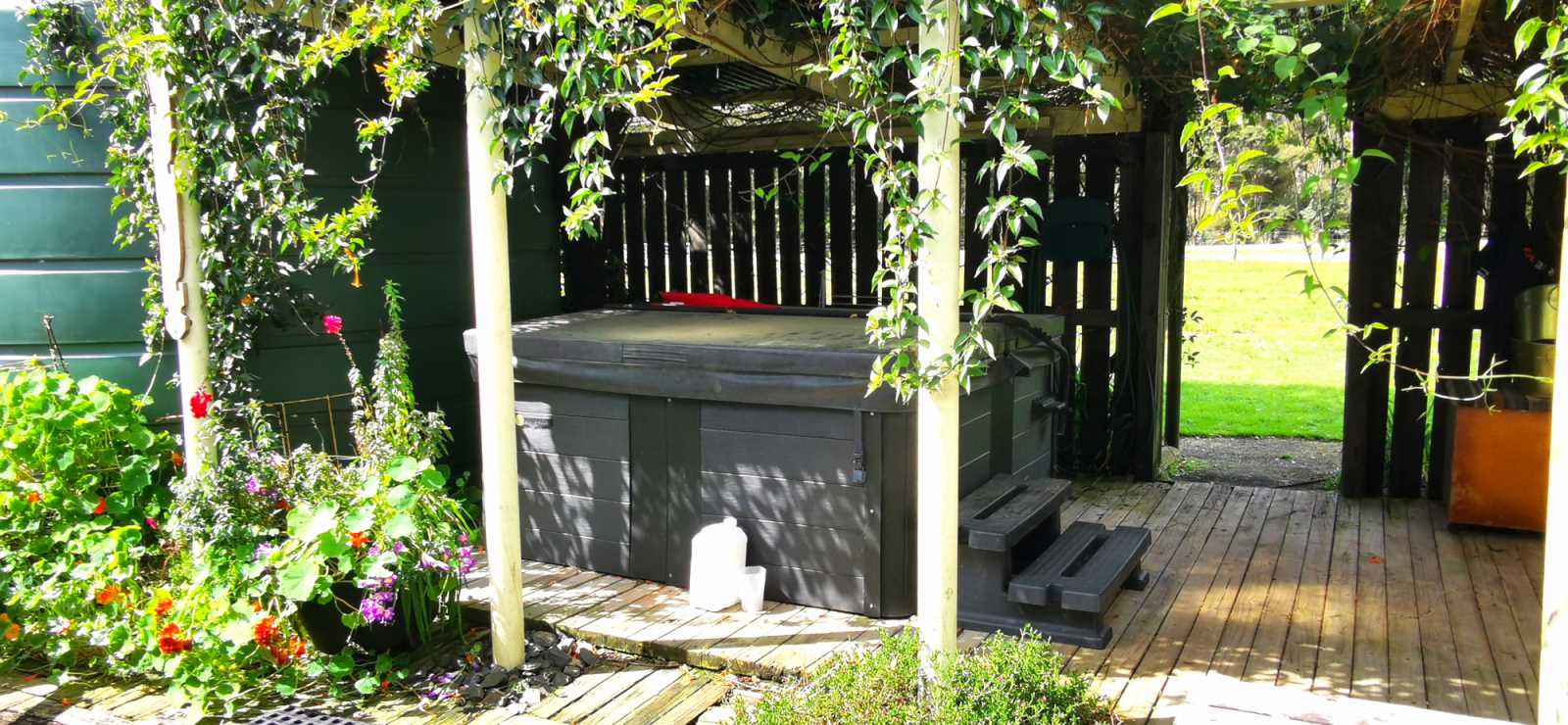 Spa. Solar panels. Native bush. Patio.