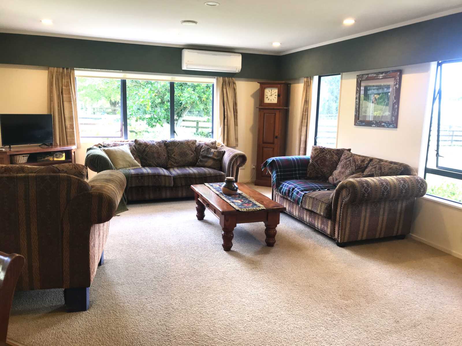 The house is insulated and well heated, with a wood fired cooker in the middle of the house plus a heat pump/air conditioner. The wood stove includes a wetback for reduced hot water bills in winter!