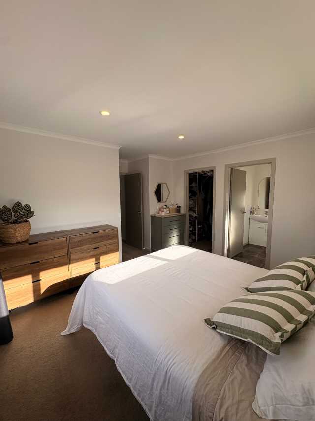 Inside, the two living areas are linked by a large open-plan kitchen. The spacious master bedroom is complete with an ensuite and walk-in wardrobe.