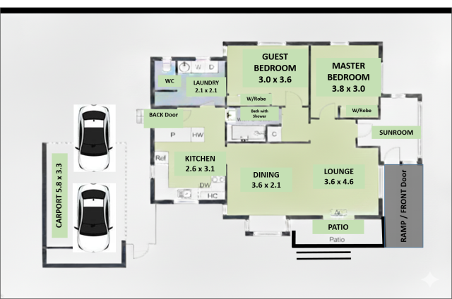 At the back of the property there is a single carport with space for a second vehicle (in tandem), providing practical off-street parking.
